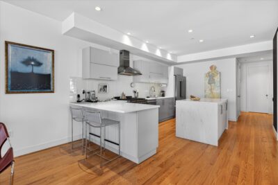 This pristine, oversized two-bedroom, two-bathroom residence feels grand, with soaring ceilings, yet is thoughtfully designed, offering both scale and comfort. The stylish modern kitchen features abundant cabinetry, a generous island, and a peninsula with extensive prep space, all anchored by a Dacor chef’s gas range. The open layout seamlessly connects the kitchen, dining, and living areas, creating a perfect setting for entertaining. Sliding glass doors lead to a delightful east-facing balcony that fills the home with beautiful morning light. Just off the kitchen, the spacious second bedroom features oversized pocket doors, enhancing the space’s open, airy feel. The king-sized primary suite offers impressive scale, a walk-in closet, and a custom bathroom with a double vanity. Abundant integrated storage runs throughout the home. Additional features include in-unit laundry, central A/C, garage parking, and private deeded storage.